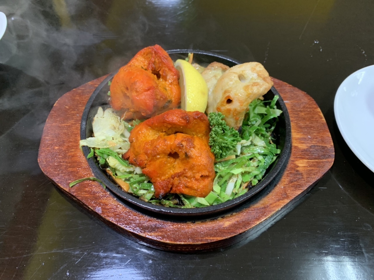 街道沿いにあるインド料理店です。一人での夕食を摂りました。1,500円(税別)のラジャセットをいただきました。選べるカリー一品とナンorライス、チキンティカ×2、ガーリックティカ、サラダ、スープ、ドリンクというなかなか豪勢なセット。日替わりのチキンとカボチャのカリーを選んだところ、これがなかなか美味しい。満腹になり過ぎ、一気に体重増加です。