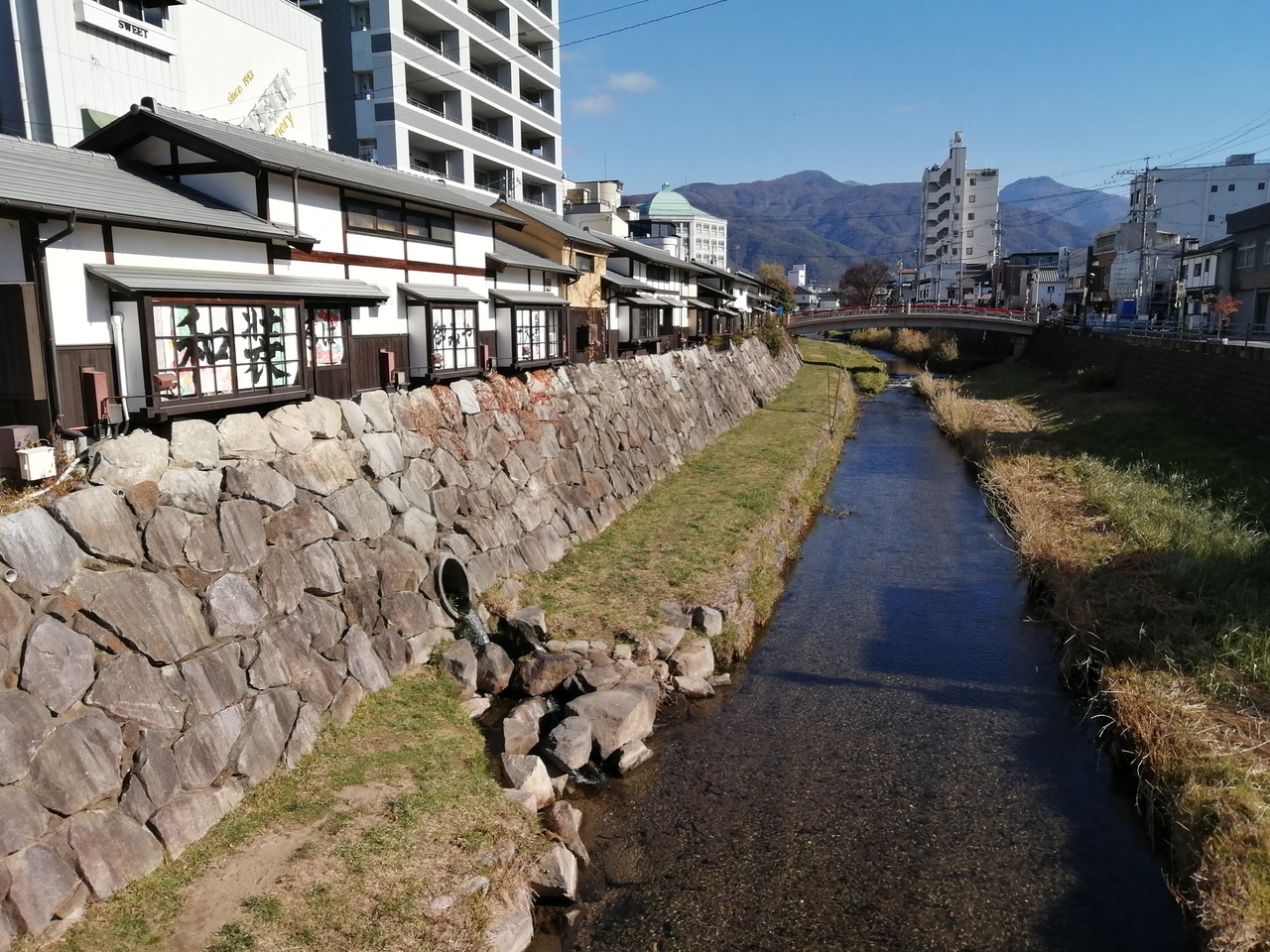 松本市北東部の山中を源とし市内を流れています。小さな川ですが、市内中心部は城下町らしく石垣で護岸整備されており緑豊かでとってもいい雰囲気。小さな橋がいくつもかけられ、川沿いにはナワテ通りや四柱神社などの観光スポットもあります。歩いて散策するにはとても気持ちのよい場所です。