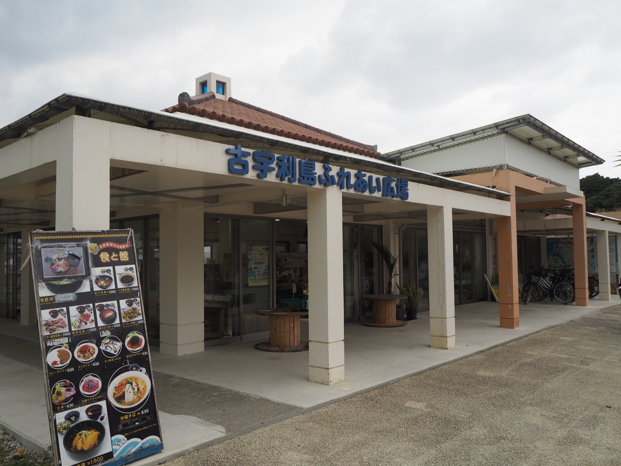 古宇利大橋を渡り、古宇利島へとついて左側に入ると駐車場と古宇利物産センターがあります。物産センターは土産物店のような感じで、地元でとれた農産物やフルーツ、海産物(海ブドウなど)が販売されています。海側へと降りて行くとビーチがあり、古宇利大橋がよく見えます。