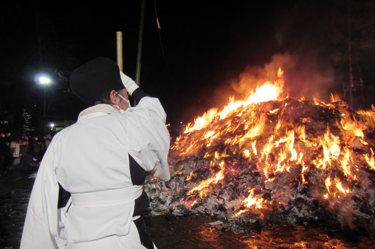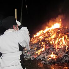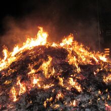 お焚きあげの火は温かく、しばらくあたっていたかったですが、風下の方にいる時は燃えカス(火の粉)なのか雪なのかが降ってきて、もし火の粉だったら服に穴があくのが心配だったので移動しました。念のためですが、訪れる時の服装は考慮した方が安心して見学できると思います。
