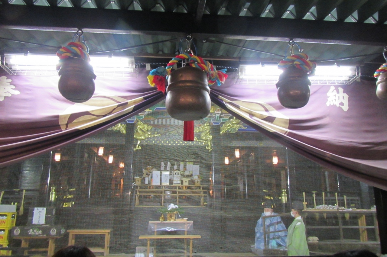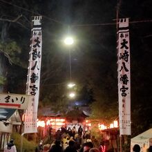 毎年、1月14日に松焚祭こと、どんと祭が行われます。2022年はおおよそ夕方5時ころからお焚きあげの火が点火され、裸参りの集団が時々、訪れていました。当日はなかなかの人混みでしたが、思う場所に移動できないとか、一定の場所にとどまってお焚き上げの火にあたっていられないという程の混み具合ではありませんでした。