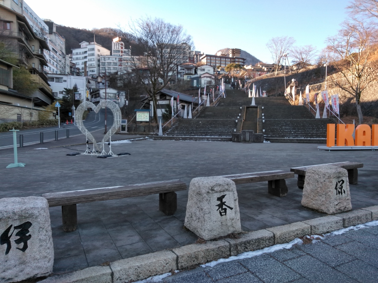 「とどろき」に泊まったので、朝食後、散歩に行ってみました。9時前だったので、観光客はわずかでした。階段下の「観光案内所」に入ると、イルミネーションのパンフレットがありました。やっている事を知らなくてとても残念でした。