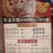 この時は 年末だったので、〈年末年始の 営業時間のご案内〉が 貼ってありました。