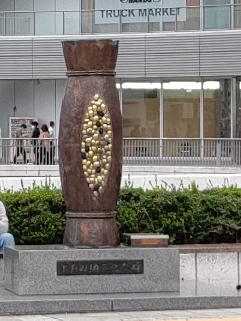 水戸駅前の広場にあるオブジェです。茨城県水戸市の名産品である納豆であることが一目で分かります。わらに包まれた昔ながらの納豆の様子がわかります。水戸に訪れた記念として写真撮影する観光客もいます。地元の人は待ち合わせ場所として利用する事が多い場所です。