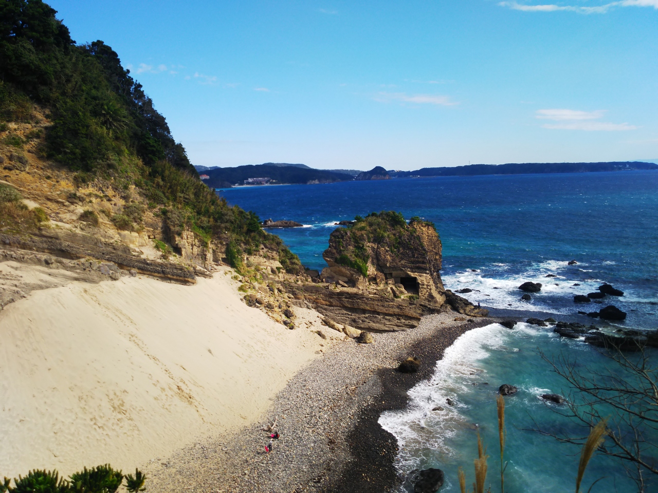 田牛地区にある珍しいサンドスキー場です。海岸に砂浜が山のように押し寄せており、その急斜面をソリで豪快に滑り降りる、自然を満喫できる遊べるスポットです。砂まみれ&斜面を自力で登るはご愛敬。夏場はそのまま海水浴という感じで混雑するようですが、秋以降はほぼ人が居ません。
