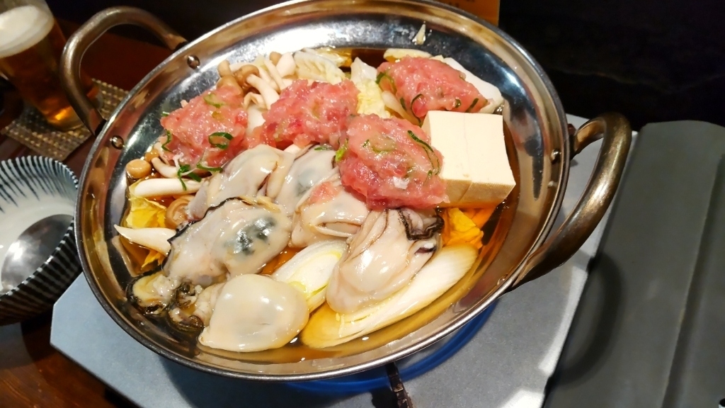 鍋はまぐろ鍋に牡蠣をトッピングした。