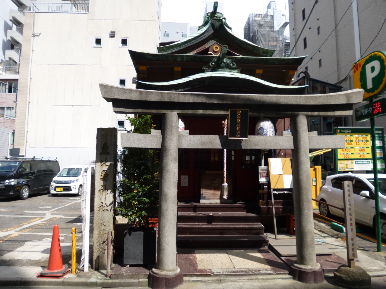 和紙で有名な小津ビルの近く、えびす通り沿いに寳田恵比寿神社があります。祠のみの小さな神社です。現在は神田明神の兼務社となっています。お稲荷さんと恵比寿様を祀った合祀の神社です。江戸時代、この辺りは大変栄えており、歌川広重の絵図にもそのにぎやかさが描かれています。