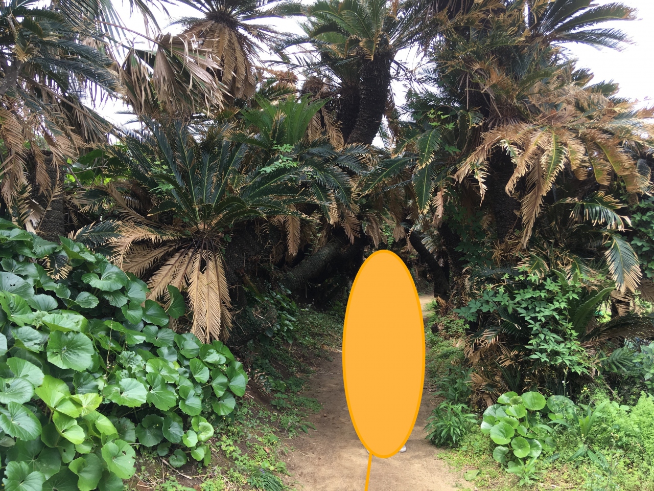 ソテツトンネルを抜けると、「金見崎展望所」へと行けます。ここからは太平洋と東シナ海の2つの海を同時に見渡せるパノラマビューが広がり、天気がいいと加計呂麻島、与路島、請島の島影がみれます。眼下にはソテツの群生林が見えます。その景色は圧巻です。