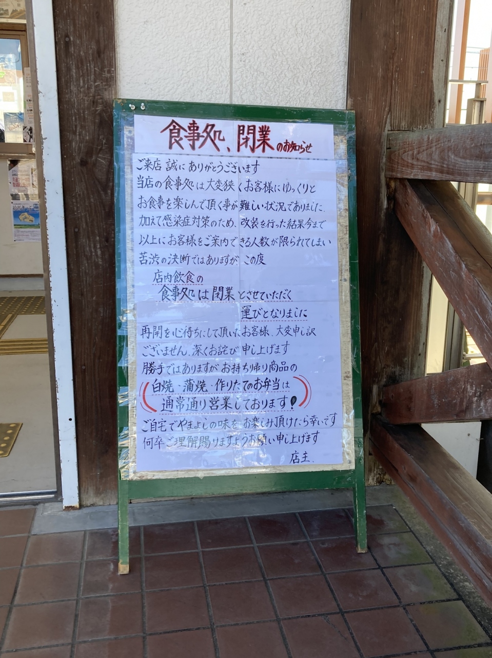 天竜浜名湖鉄道(天浜線)の始発駅である新所原駅構内にあるうなぎ店。天浜線は、愛知県との県境である静岡県湖西市の新所原駅から掛川駅を結ぶ第三セクターのローカル線。小さな駅の改札口を通ると、炭火焼きの香ばしい匂いが立ち込めます。コロナ前までは店内でも食べることができたのですが、コロナ対応の改装により、更に店内が小さくなってしまったことから、残念ながらテイクアウト専門店になりました。一切入り1600円、二切入り2100円、一本入り2800円のうなぎ弁当と白焼きや蒲焼がありますが、白焼きや蒲焼は湯煎で温めるタイプで、当日に食べない場合は販売しないとのこと。注文してから作るので10分程度かかります。