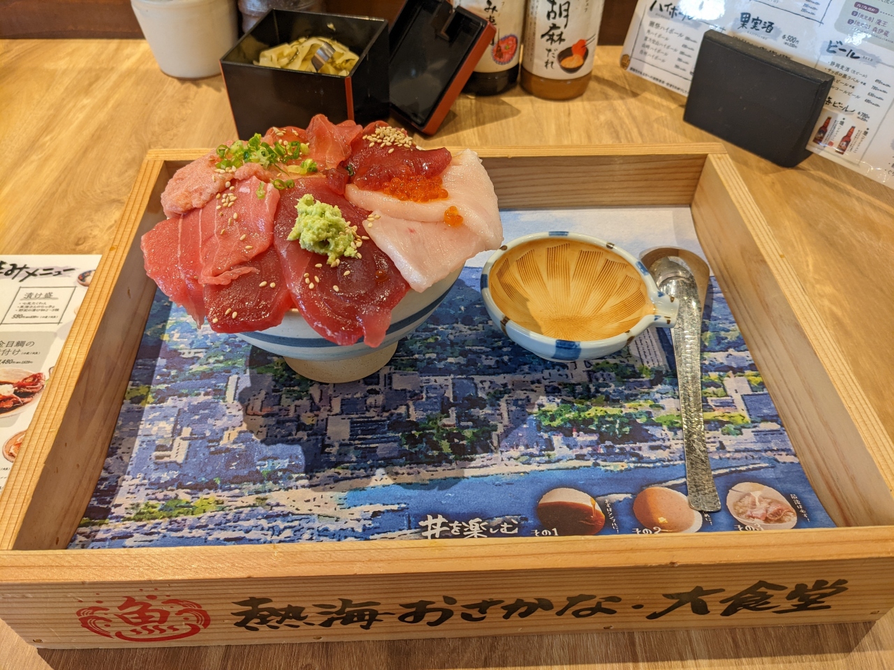 2021年11月にオープンした話題の海鮮丼のお店。ものすごく繁盛しており、行列ができているが、ホテルから近いので、整理券だけとって、ホテルに帰れば待ち時間はなしでよかった。人気の店だが、レビューの評価が悪いので不安だったが味は悪くない。ただコスパは悪いのでリピートはない感じ。