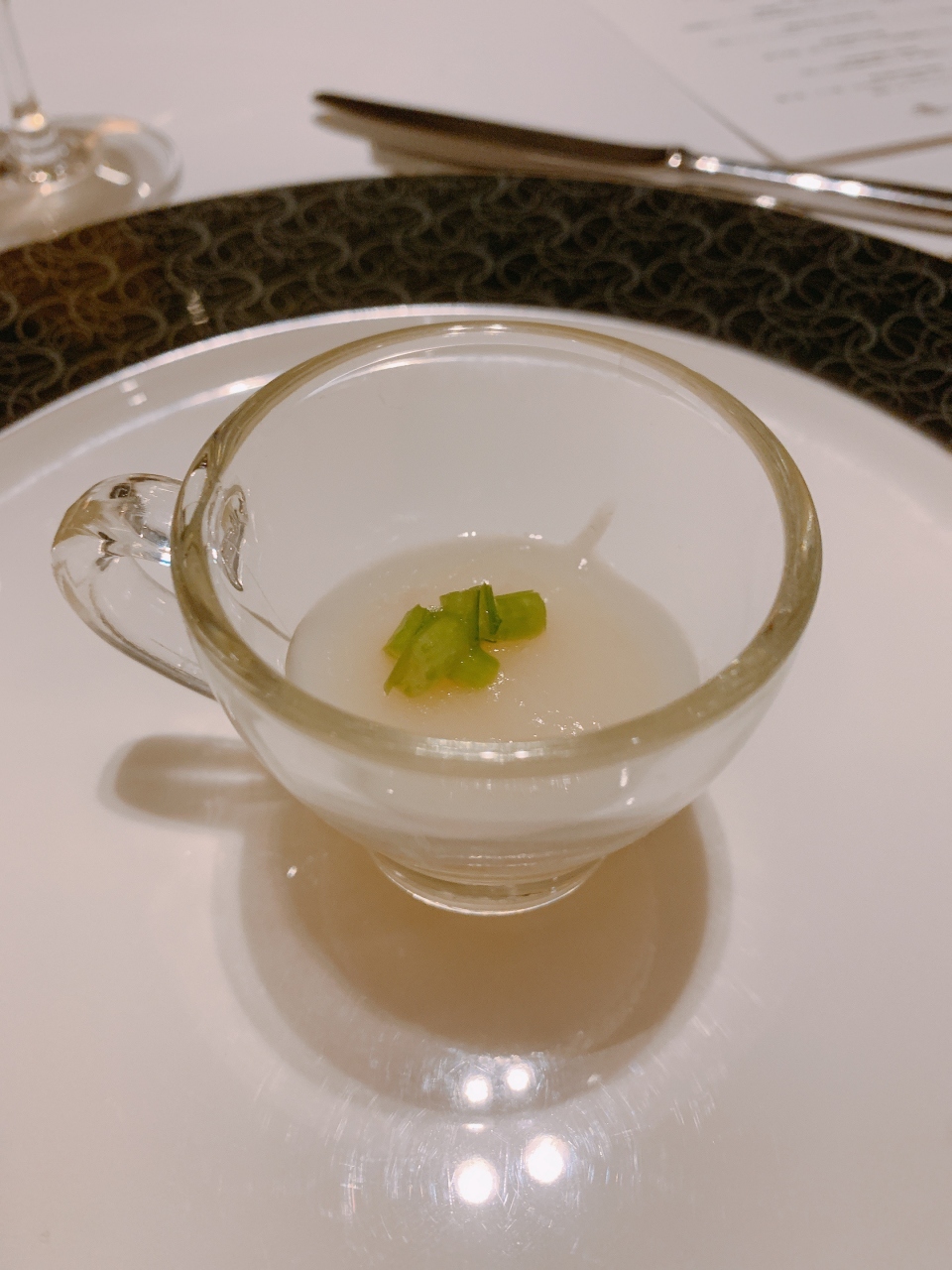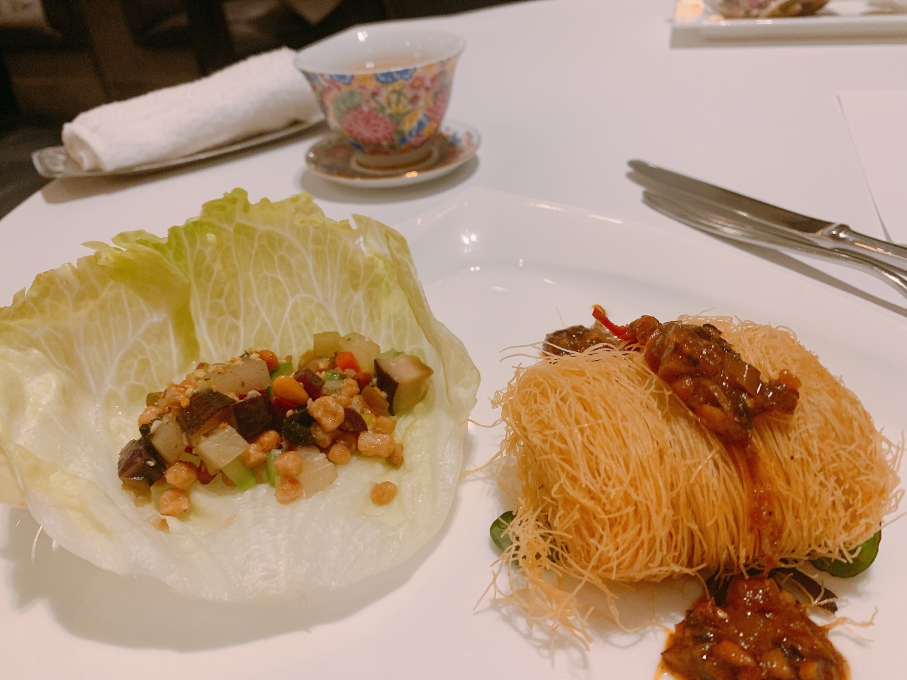 スタッフがすぐにお茶を注いでくれ丁寧に接客してくれて会食などの利用にも向いてるしっかりしたレストランでした