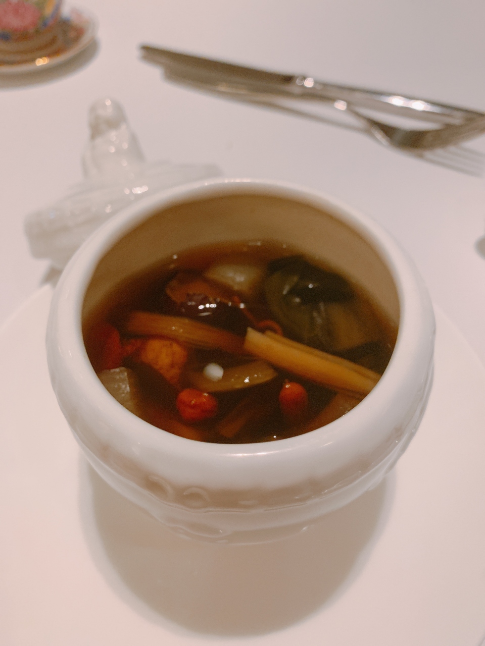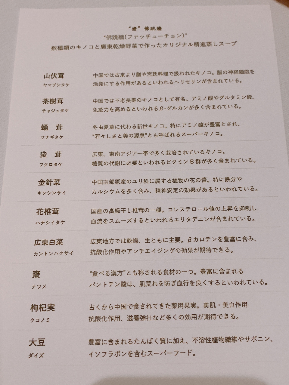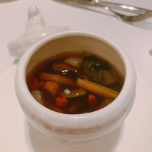 数種類のキノコと乾燥廣東野菜で作ったオリジナル精進蒸しスープ