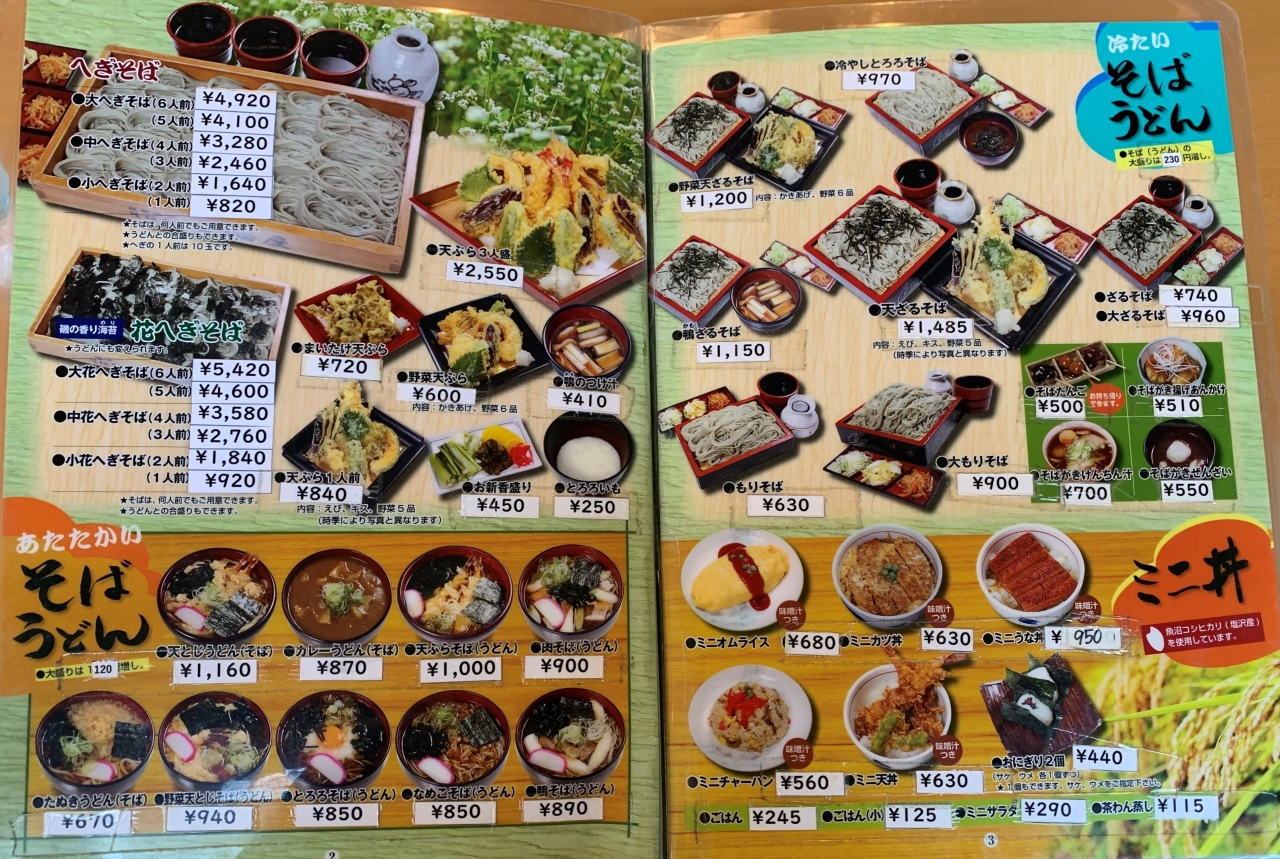魚沼地方は米だけではなく、”へぎそば”でも知られていますので、これはぜひおさえておかねばと思い、国道沿いのいくつかの人気店のうちこちらを選択。”布海苔(ふのり)”がつなぎとして練り込まれ、”へぎ”という器に”手繰り”という一口大に盛られるのが”へぎそば”ですが、この店は蕎麦のボリュームがスゴイです。朝食からそんなに時間がたってなく、蕎麦くらいなら軽くいけるだろうと油断して天ぷらまで頼んでしまった…。ですが、そばは風味も歯ごたえものど越しも良く、ツルツルと行けてしまいました。天ぷらも衣の具合がちょうどよく、美味しく完食しました。
