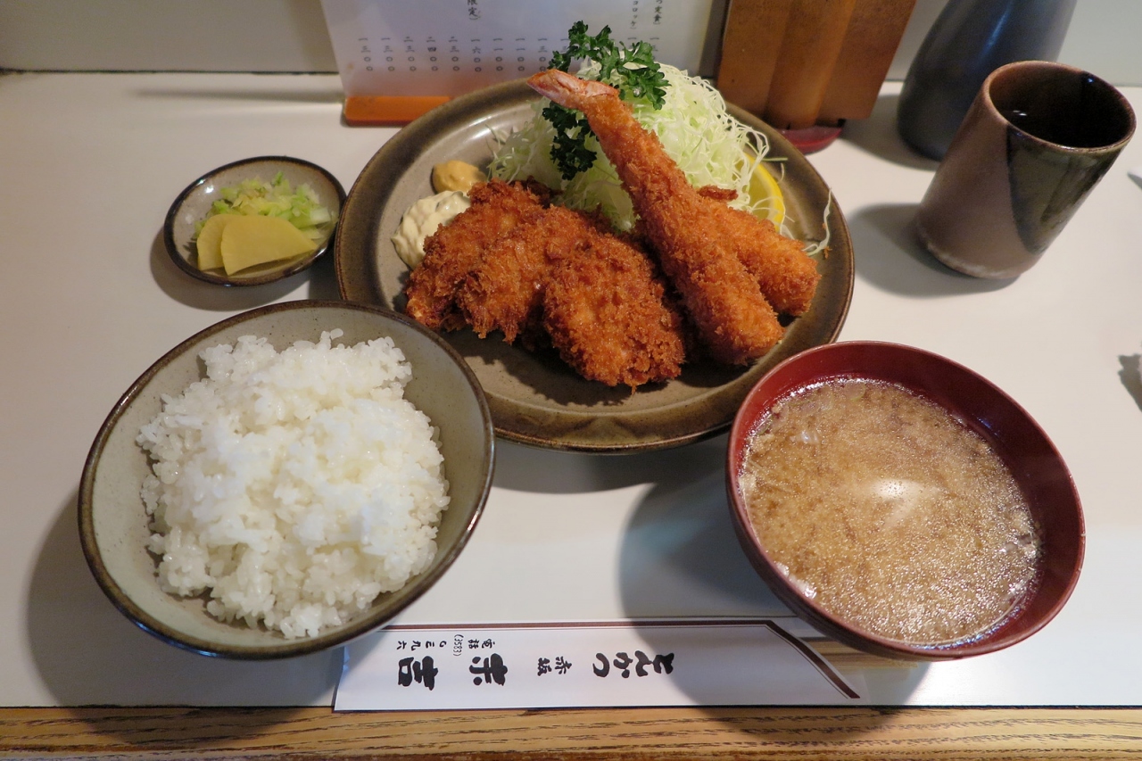 - お好み定食(ヒレ一口、海老、コロッケ)にカキフライ1つ追加、おいしかったです