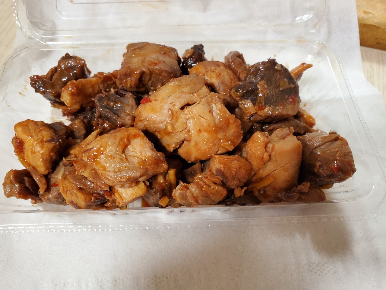 別のお店で昼食をとってからの訪問でしたので、持ち帰り用のものを探しておりましたが、生のまぐろはお値段そこそこなので今回は見送りましたが、しげという店舗の煮付けが250円という破格で販売されていたので、購入しました。