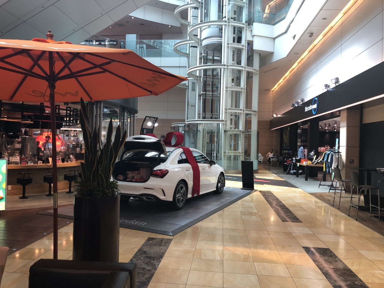 メルセデスベンツを見ながら頂くことが出来ます。