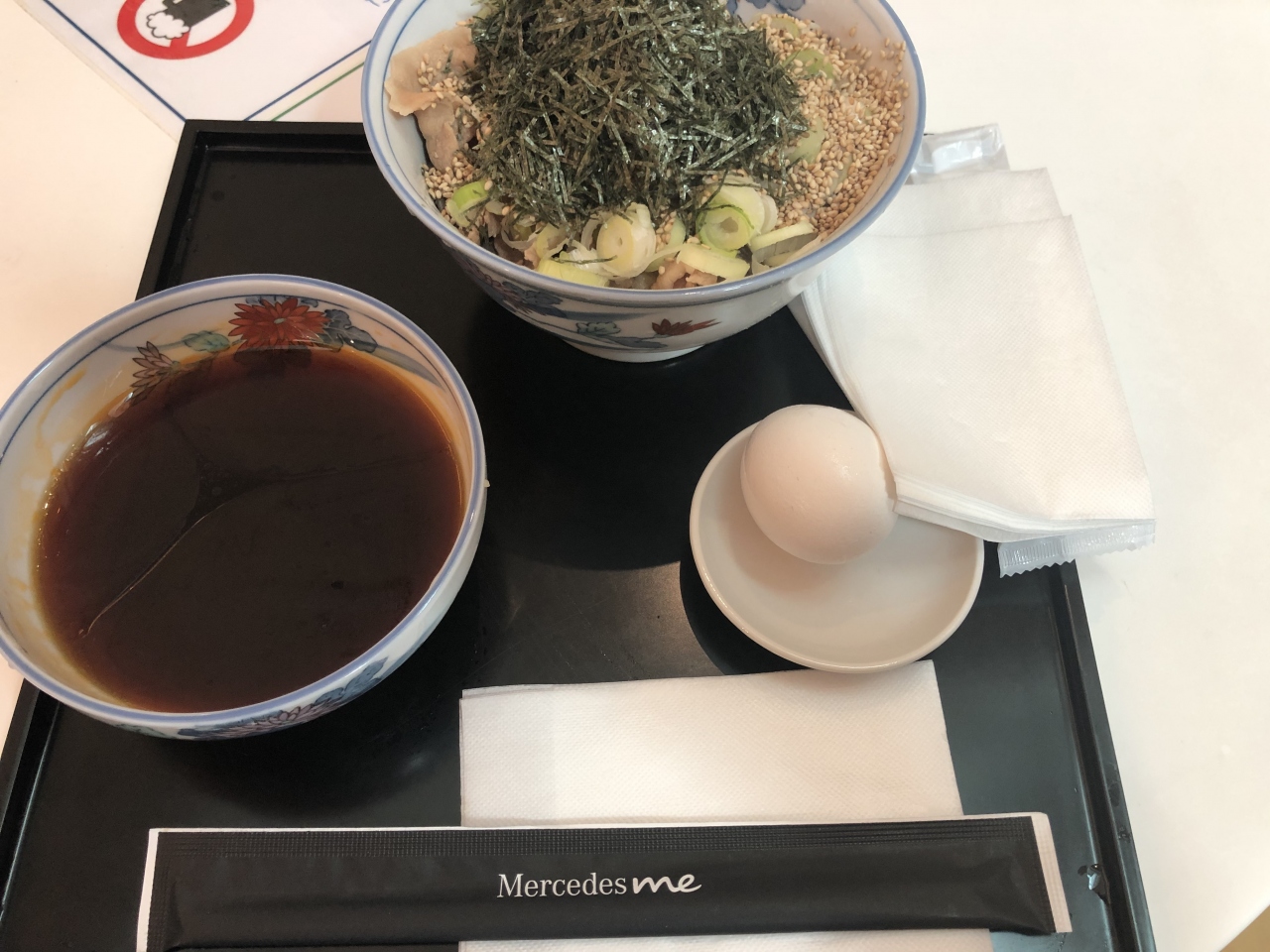 海苔、ゴマをケチることなくふんだんに盛り付けられているのがいい感じです。ツユは少ししょっぱめにラー油が入っています。