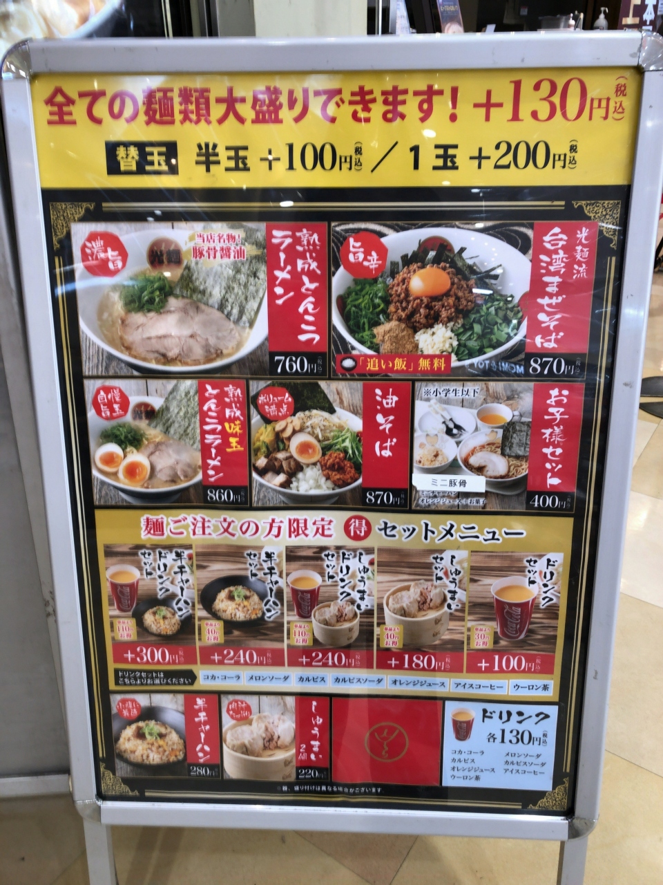 なので正直味はそこまで期待していなかったのですが、ちゃんとした豚骨ラーメンで美味しかったです。ソフトドリンクも追加100円で頼めました。