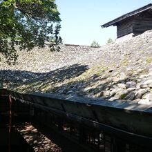 正式には「杉皮葺きの石置屋根」といいますが、名前の通り杉皮を重ねて屋根を葺き、平らな石を置いた特徴的な屋根。