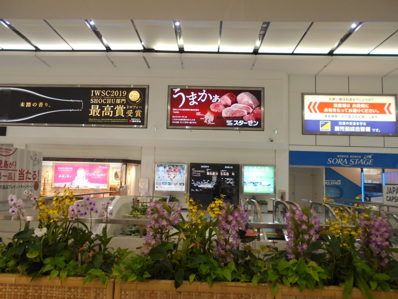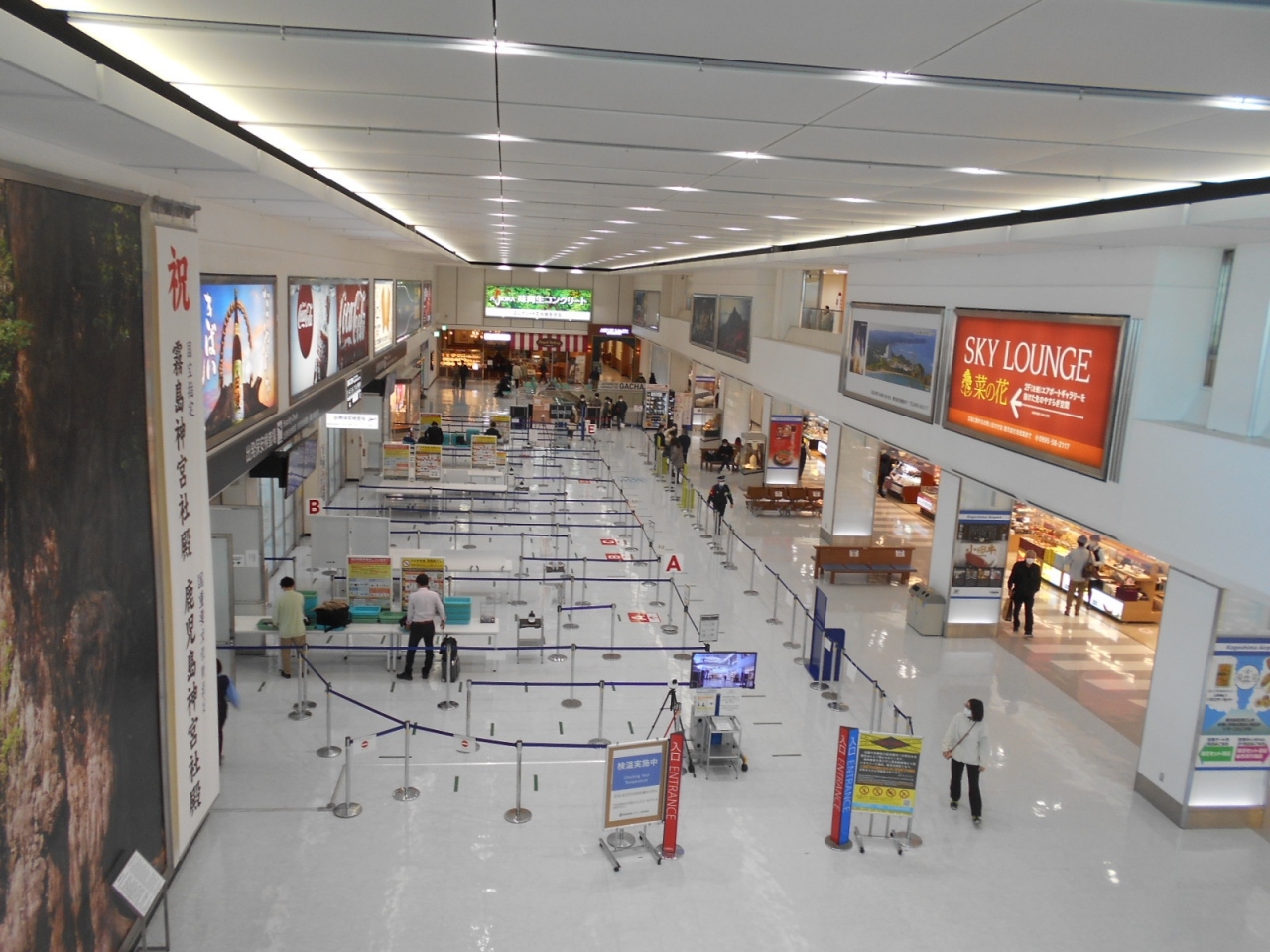 鹿児島空港発着のバスは鹿児島空港以外は大幅に減便されており事前に調べて置く事を勧める。空港内は南国らしく花に溢れ、展望台は空港を離発着する航空機だけでなく、霧島連山を心行くまで眺めて居られる。コロナ禍で乗客が少ない事もあり、チェックイン、セキュリティはスム-ズであった。