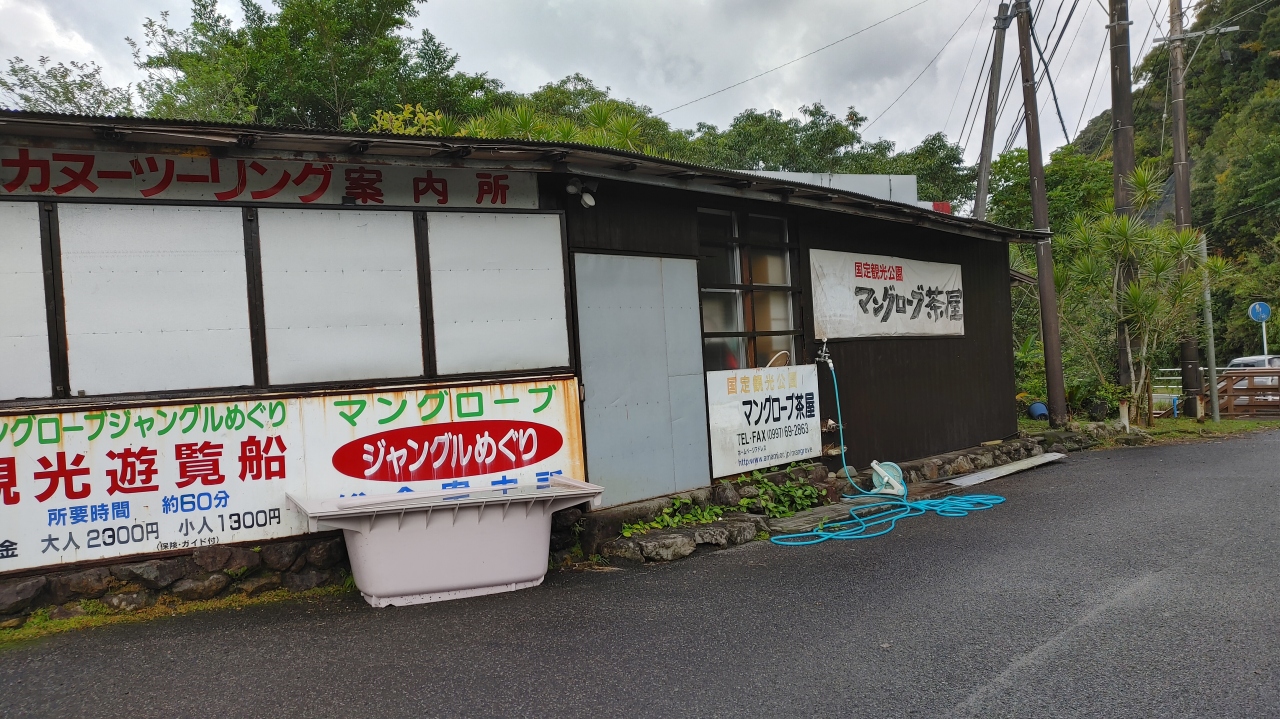 マングローブ林の中を漕いでいく「カヌー体験」の拠点です。初めにここで受付を済ませ、少し下った船着き場に降ります。建物の奥に展望台があるのですが、それよりもいいのは建物の上の屋根無しのテラスです。ここからは遮るものなく林が見えるうえ、反対側の小山に沈む夕陽なども見れます。なお夕食にここの「カニうどん」を食べたかったのですがオフシーズンだったからかやっていませんでした。