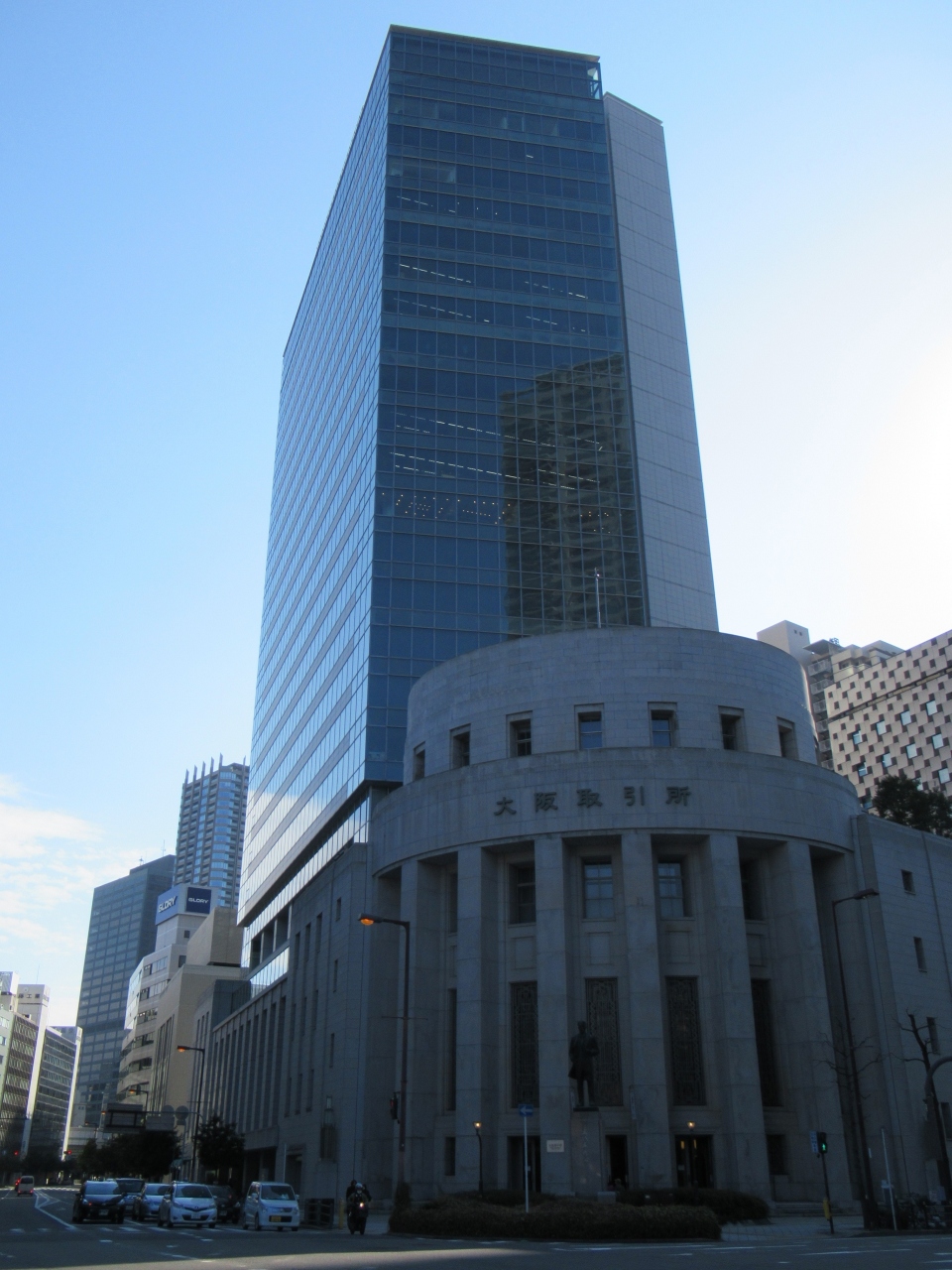 五代友厚像で一番有名なのは北浜にある大阪証券取引所の前にある銅像です。