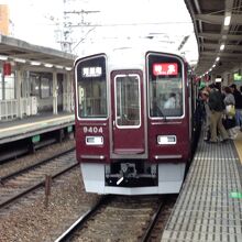 大阪梅田と京都河原町を結ぶ阪急最長路線です。この線の特急車は昔からJRの新快速を意識した通勤車とは違う特別な車両で運転されていて花形という感じがします。山あたりで新幹線と並走する場所がありますが、新幹線の線路を工事の関係でこの京都線電車が走った逸話があります。このあたりでは東海道新幹線をはじめに走ったのは阪急京都線の車両ということで知られています。