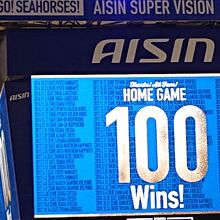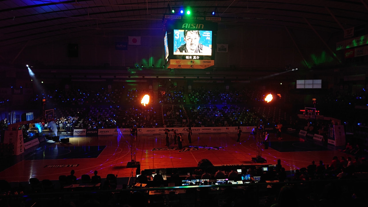 1月下旬の休日の午後に、Bリーグ観戦で、公園内に立地するウイングアリーナ刈谷を訪問しました。対戦カードは、三河対富山。座席位置は、二階センター指定席A(ベンチ側・ややホーム寄り)。二階席の中では、値段の高い席ですが、コート中央に近く、値段にふさわしい観やすさでした。試合は、接戦の末、ホームチームの三河が、76対70で勝利。そして、その勝利が、ホーム通算100勝目ということで、試合中も試合後も大変盛り上がりました。
