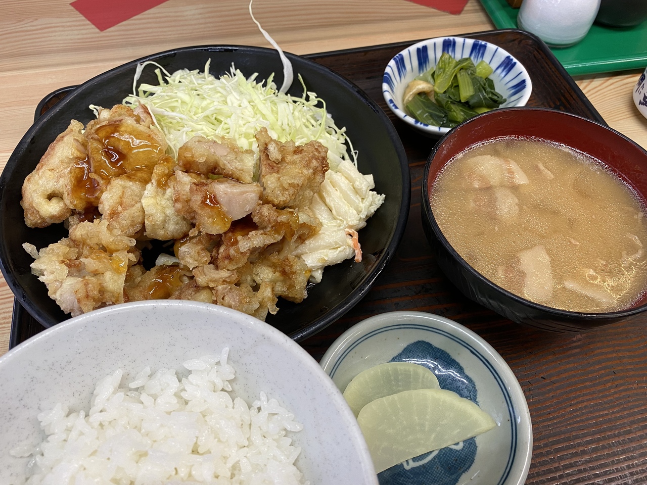 成増駅近くにある昔ながらな定食屋さんです。揚げ物と魚を食べるケースが多かったですが、この日はなんとなく唐揚げが食べたくなって注文。実は初めてだったかも。甘いタレが薄くかかっていて独特ですが何を食べても旨い!この日は豚汁付きでお得でした~。