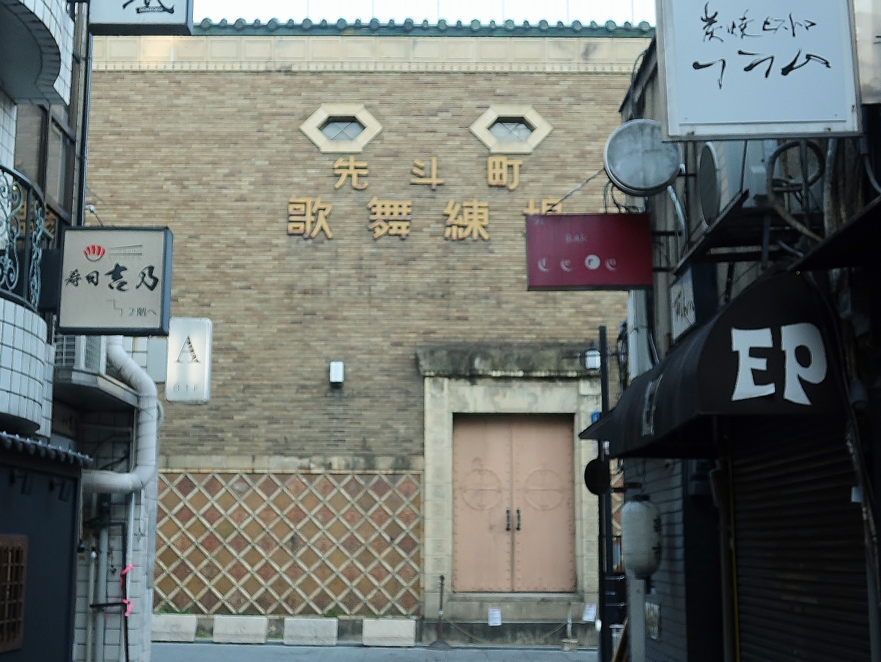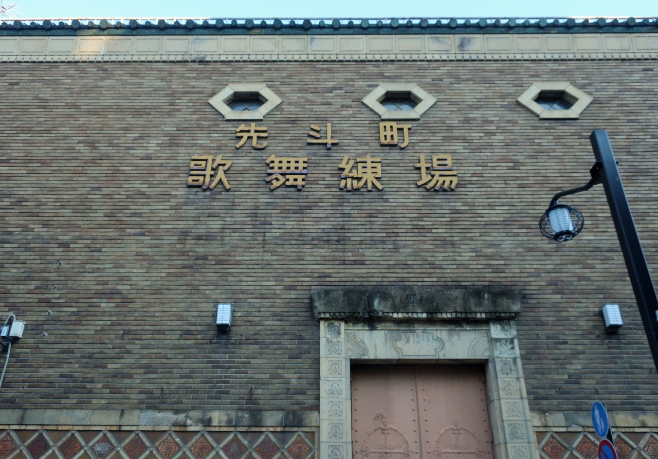 京都の花街にはそれぞれ歌舞練場があり、それぞれの「をどり」が披露されるが、ここでは先斗町の「都をどり」が繰り広げられる。舞妓さんたちの練習場でもあるはずだ。初めて知ったが、舞台が空いているときは一般にも開放しているらしい。雰囲気あるホールなので人気があるだろう。大正末期に着工し、昭和初期に完成した。外観はレンガ積みのモダンさがあるが、舞台は和風。河原町側から見た時、繁華街の屋根の向こうに「先斗町歌舞練場」という独特の文字が見える光景が絵になる。