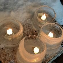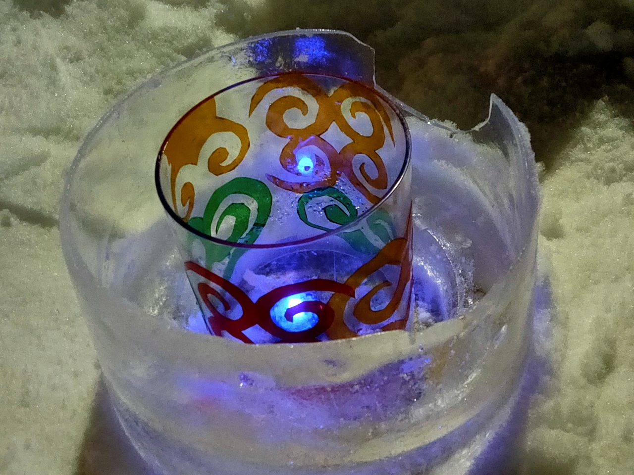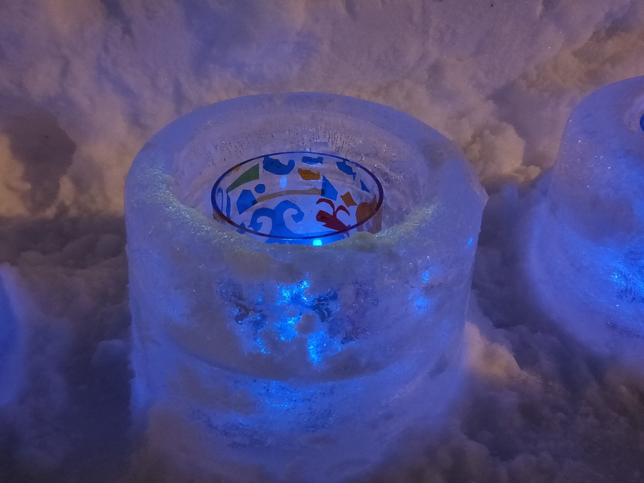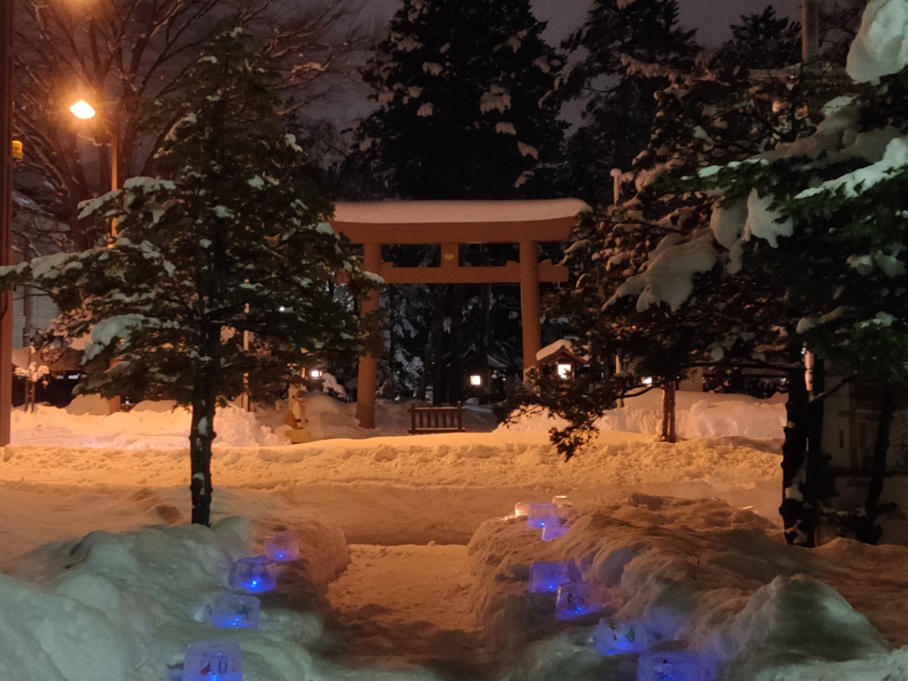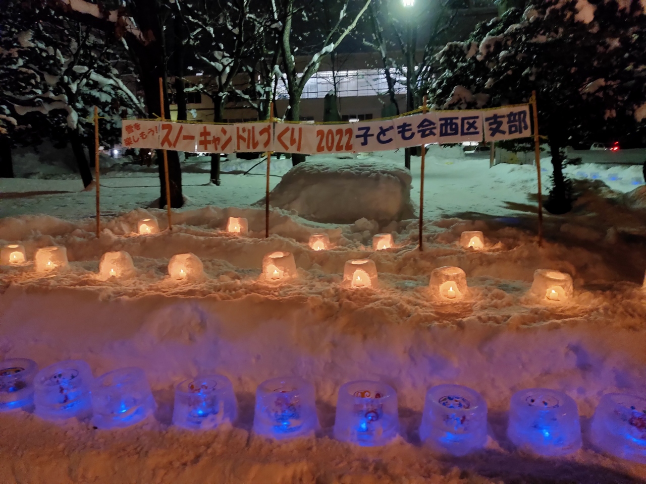 ただし、新型コロナウイルスの影響もあり、規模は小さくて素朴な感じで、西区役所前の屯田の森の通路沿いに幾つかのアイスキャンドルが飾られたほか、琴似栄町通りではかなりの間隔で、数えるほどしかありませんでしたが、小さく煌くロウソクの火(一部、電子ロウソク)が心を和ませてくれました。