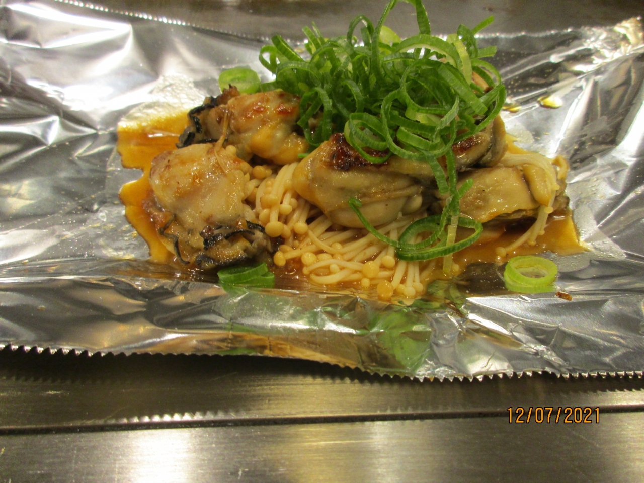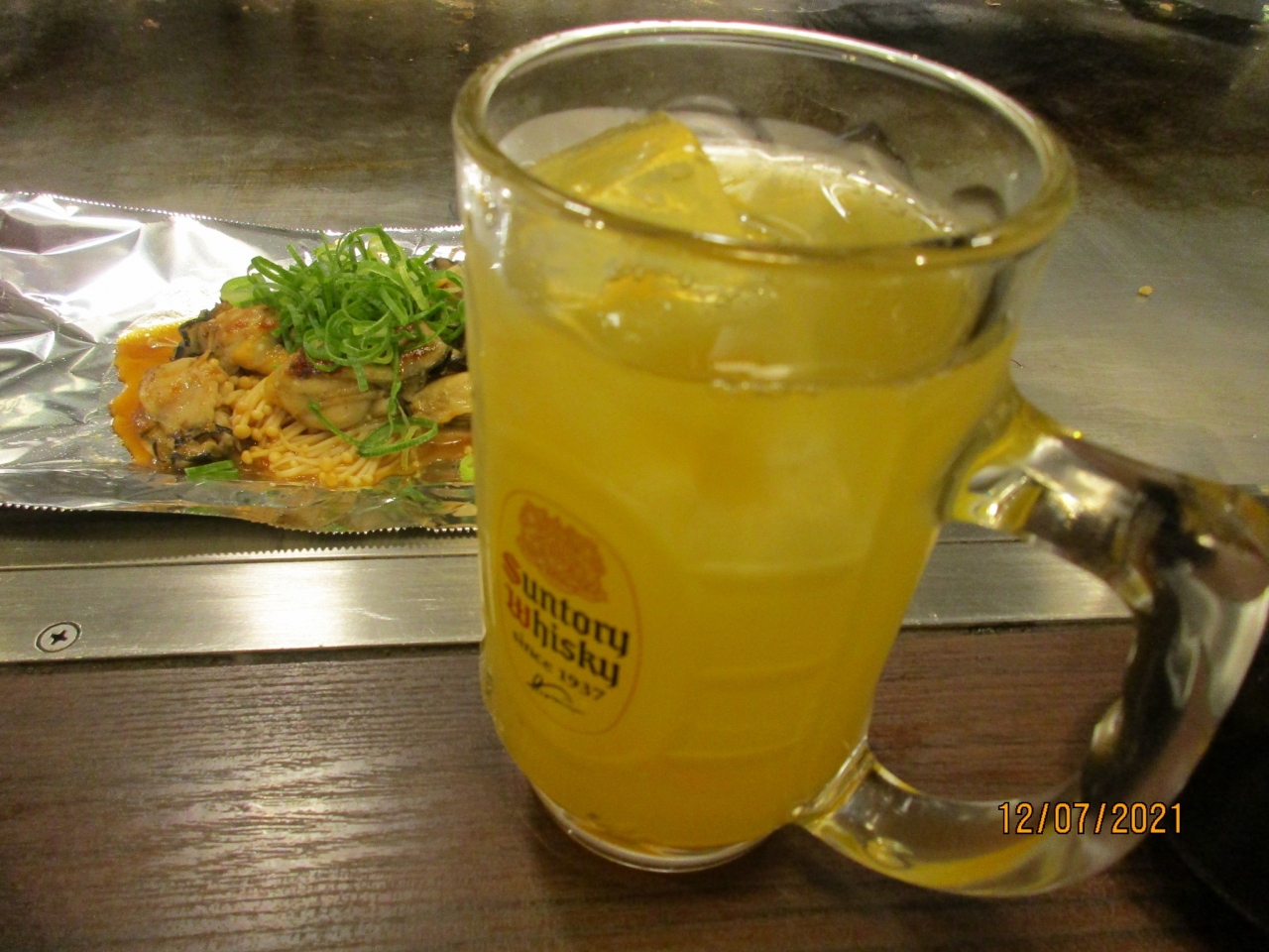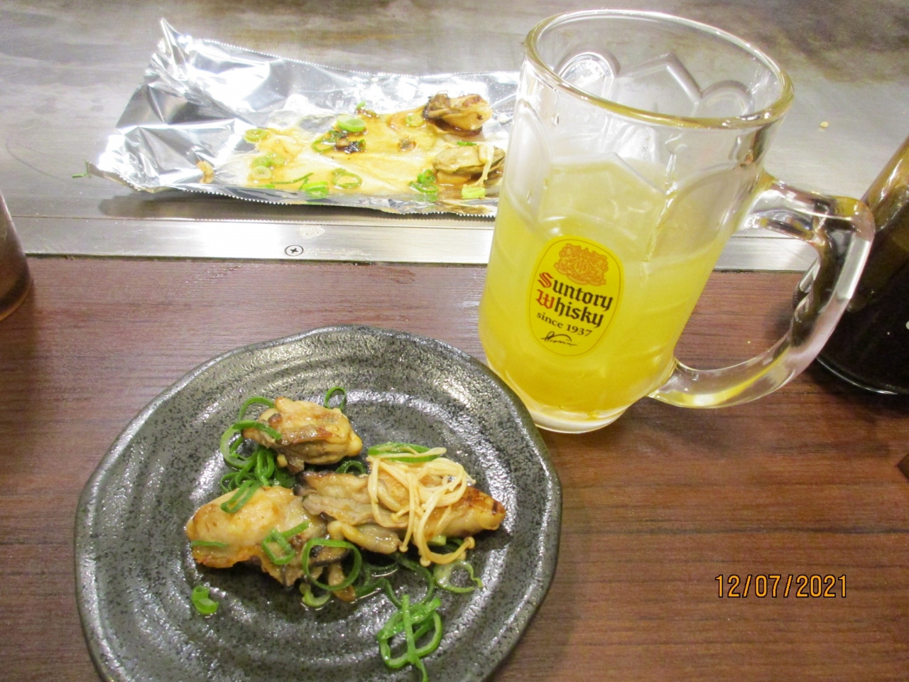 1,100円】【牡蠣焼き825円】生ビールとハッサク角ハイボールを注文。合計3,065円。