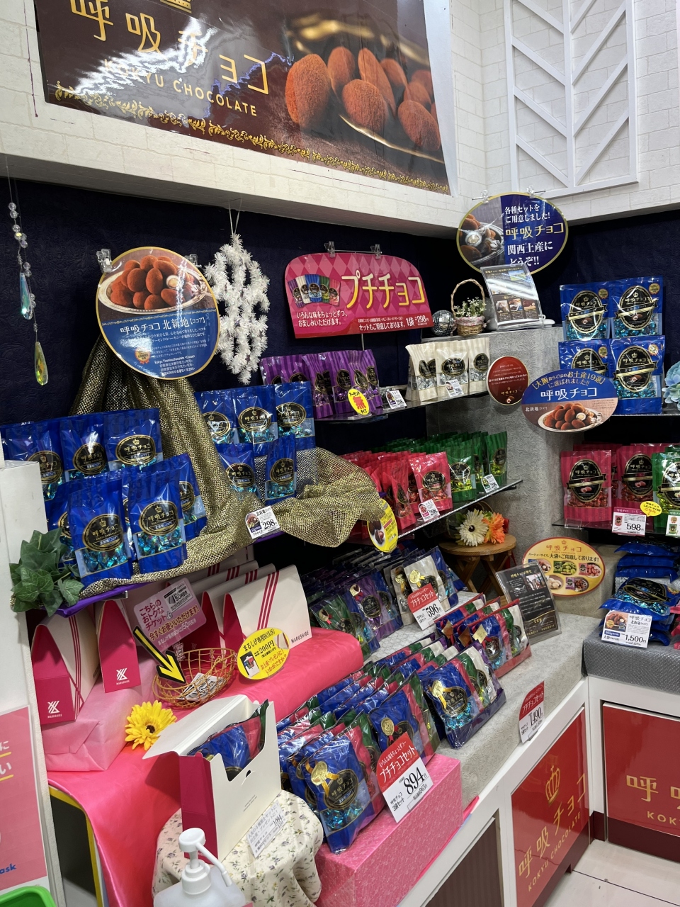 店内には、「呼吸チョコ」や「たこせん」「鹿児島芋けんぴ」…などなど