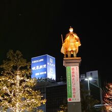 1月中旬の週末の18時台に訪問しました。日没から時間が経ち、周囲は完全に夜。そんな中、織田信長公像は、ライトアップの光と、自身の黄金色とが合わさり、大変に目立っていました。岐阜市のランドマークとしての役割を果たしているなあ、と感じつつ、像の前を後にしました。