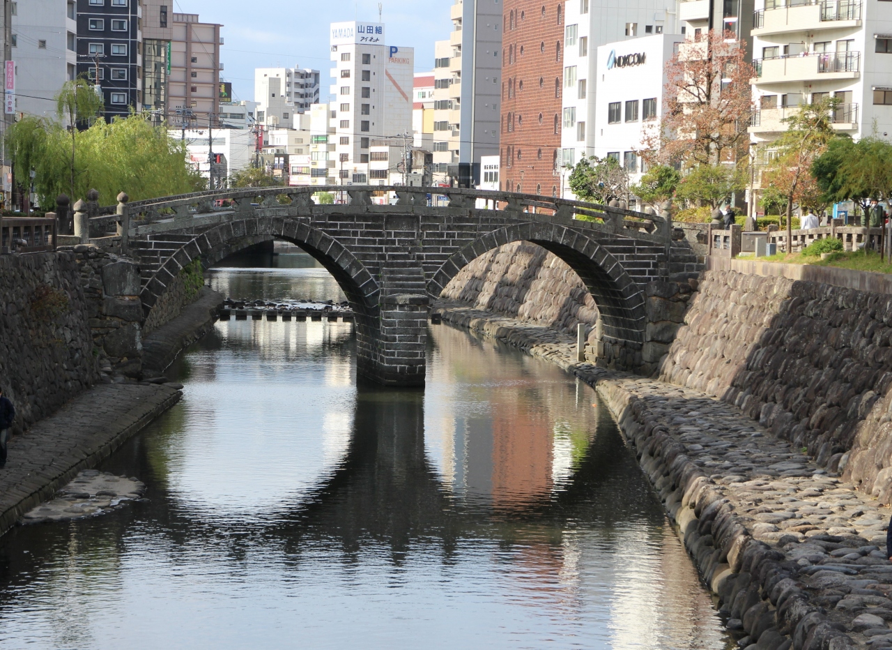 川面にうつった橋の影が双円を描き眼鏡のようにみえる「眼鏡橋」