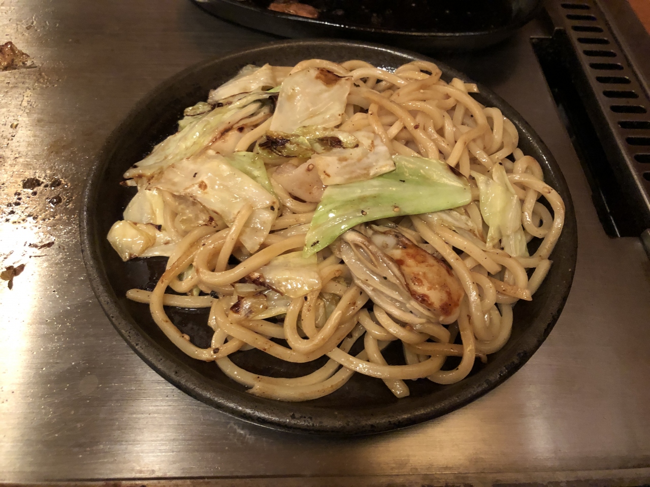 法善寺横丁にあるたこ焼きの店ですが、お好み焼きや焼うどんなどもおいしいお店です。テーブルには鉄板がりますが、ほとんど調理されたものが出てきて、鉄板で温めるという形式です。私たちは飲み会の2次会で行きました。店も同じようなお客さんでいっぱいで、居酒屋さんのようになっていました。