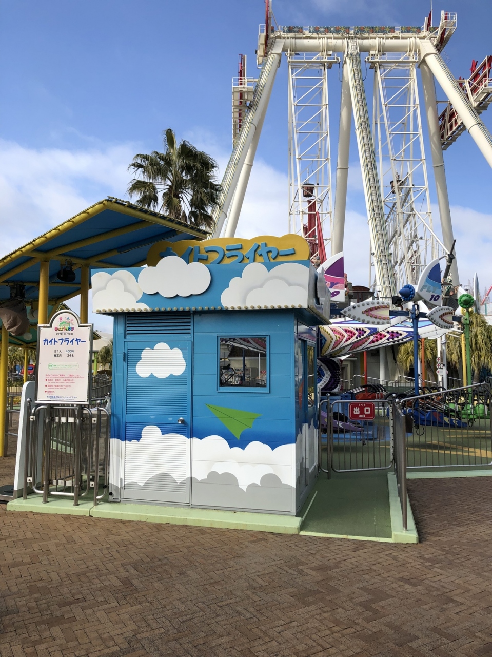 3よんメートルくらいの高さでクルクル回ります。良くある遊具ですが、二人乗りでうつ伏せの姿勢で乗ります。