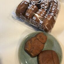 かわいいたぬきや鈴やタイコなど、いろいろな形の人形焼があります。