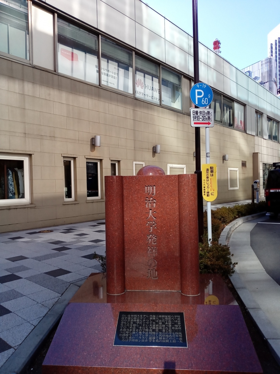 東京 銀座の「GINZA5」の横に「明治大学発祥の地」の碑を見つけました。現在では、銀座に明治大学はありませんが、銀座が発祥の大学だそうです。