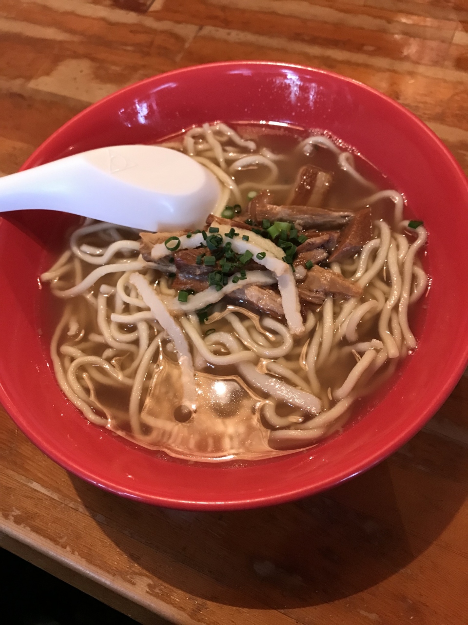実は、今回の旅行の昼食で4回とも(ホテルの朝食バイキングでも作って食べたが)八重山そばを食べたのだが、最初からレンゲをつけて出されてきたのはこの店だけ。それだけスープの味に自信があるのだろうか、まぁ自分の好みとしてはダントツでこの店の八重山そばが美味しかったのでそれでいいのだが(笑)