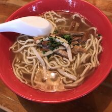 麺は(うどんと比べると細めの麺だが、ラーメンの麺と比べると)やや太めのストレート麺。