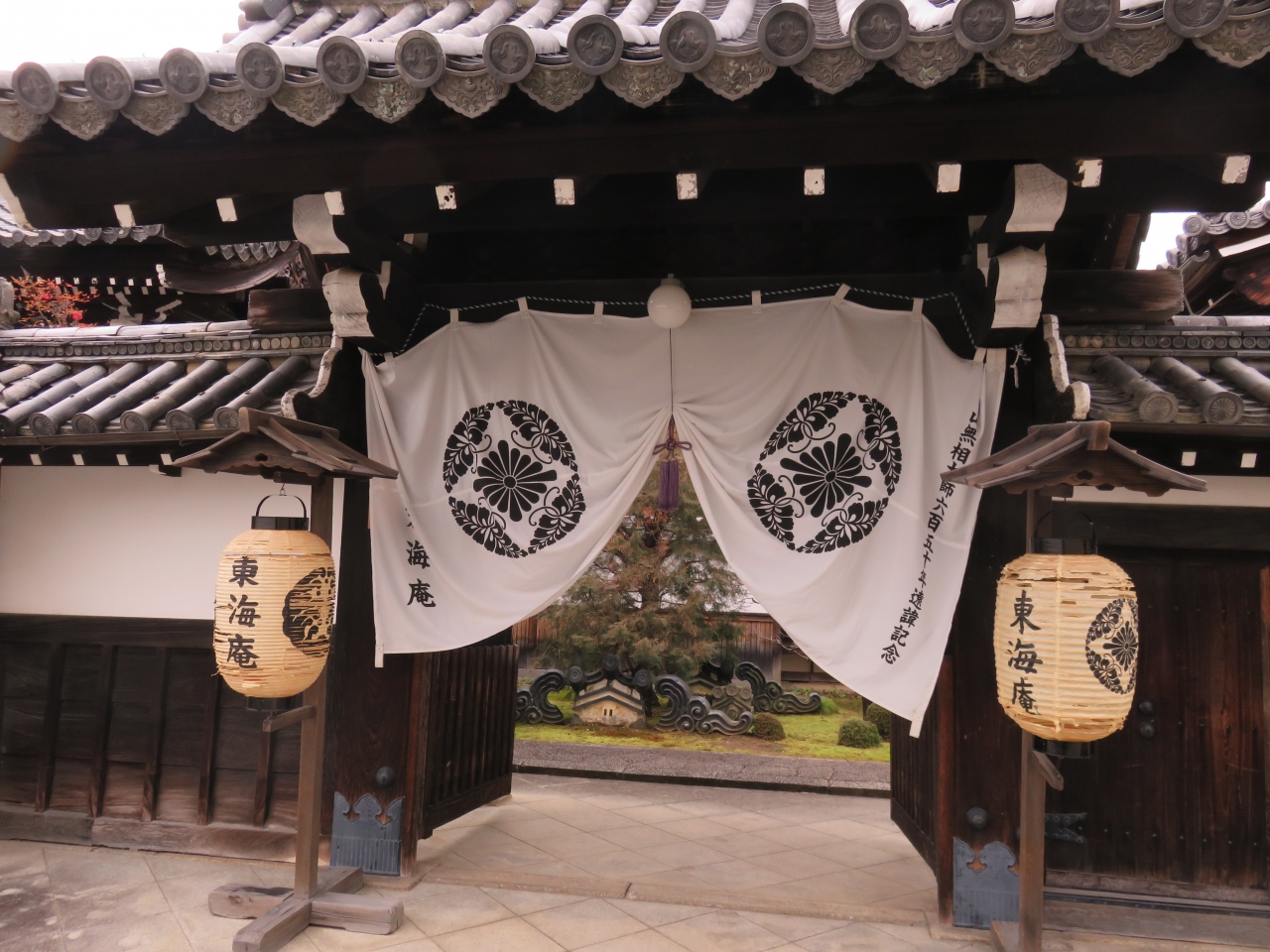 京都は右京区花園にある臨済宗大本山妙心寺の塔頭東海庵です。境内に立ち入りましたら本日は葬儀があるので立ち入りはダメと叱られました。南側では、葬儀屋さんがたくさんのテントや床机を準備中で何やら忙しそうでした。