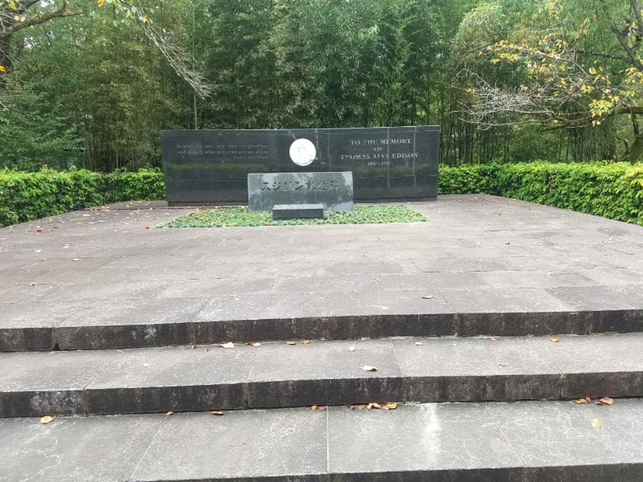 三ノ鳥居から真っ直ぐ伸びる参道の左手に高い塔などがある区画が見えたので散策してみると唐突に現れました。なぜここにエジソンさんが?と思いましたがエジソンさんが発明した電球のフィラメントとして最適な材料がこの辺りの竹だったそうでこれは日本人としてとても誇らしくて感激しました。有名な「天才とは、1%のひらめきと99%の努力である」の言葉が英語で記されているので見逃さないようにして下さい。