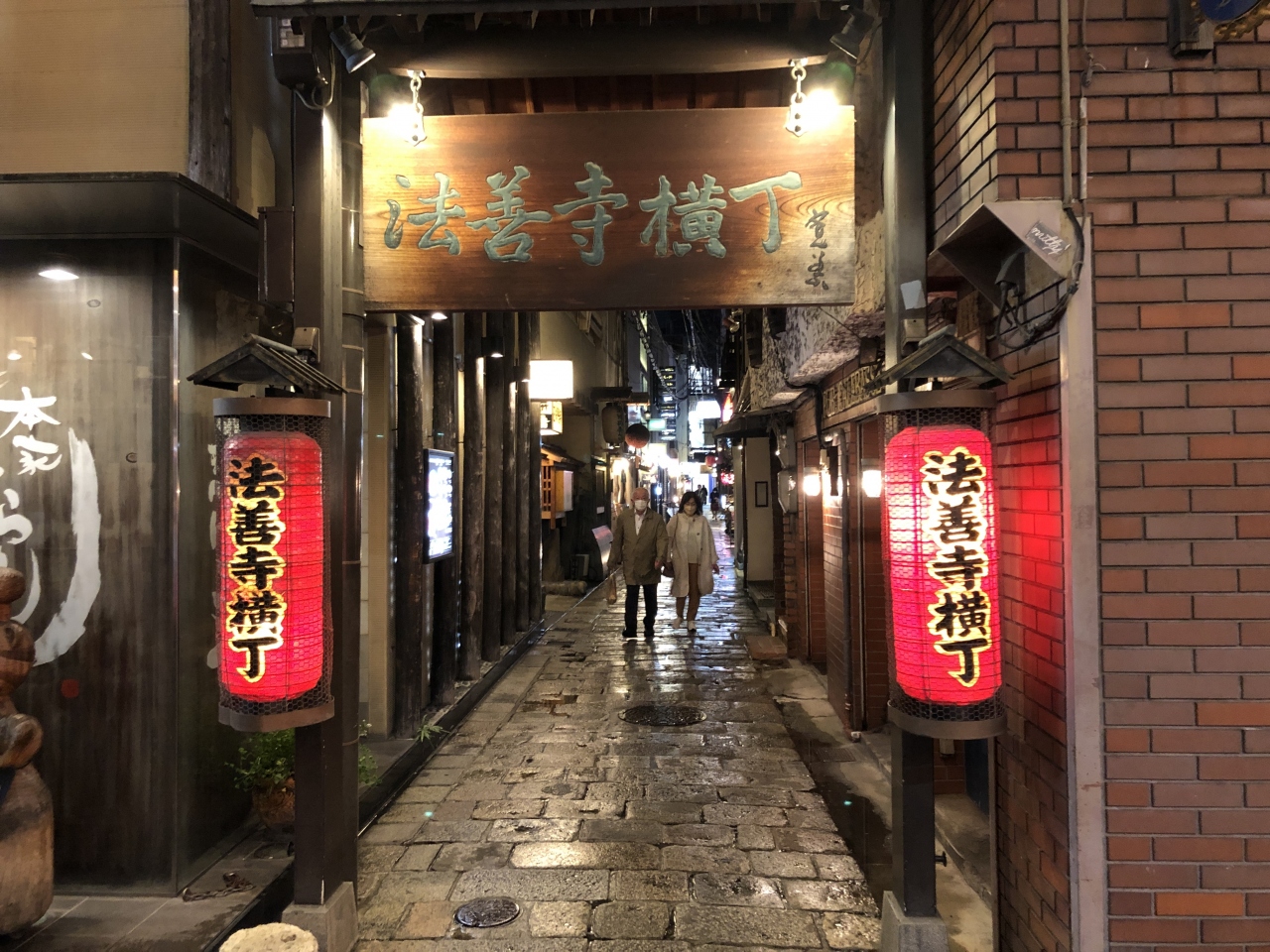一本の包丁を晒に巻いて旅に出るという内容の歌謡曲で有名な法善寺横丁。寺前の落ち着いた雰囲気と静けさを感じる路地です。観光客にとって、大阪ミナミの繁華街の賑やかさはカオスな大阪らしくていいのですが、昂った気分を落ち着かせるこの横丁の雰囲気も、私は静かな大阪として好きです。