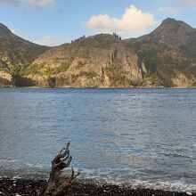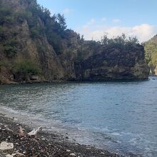 道路際の駐車場にレンタルバイクを駐車して、まるで獣道のような悪路を10分ほど下ったところにある海岸です。