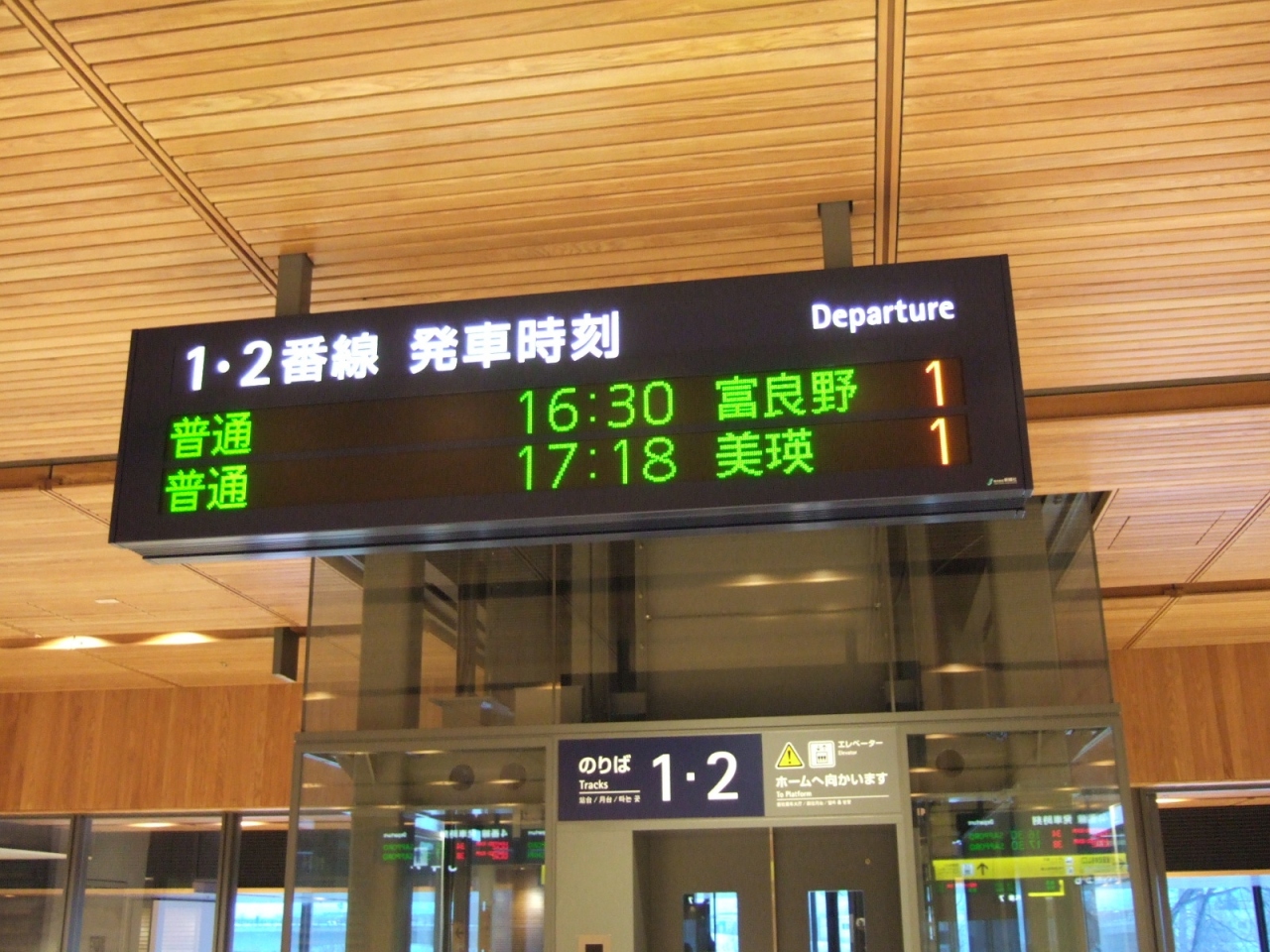 基本的に1時間に1本、美瑛行きと富良野行きが交互に出ていますが、夕方はちょっと間隔が縮まります。でも学校帰りの高校生で車内はかなり混んでいました。