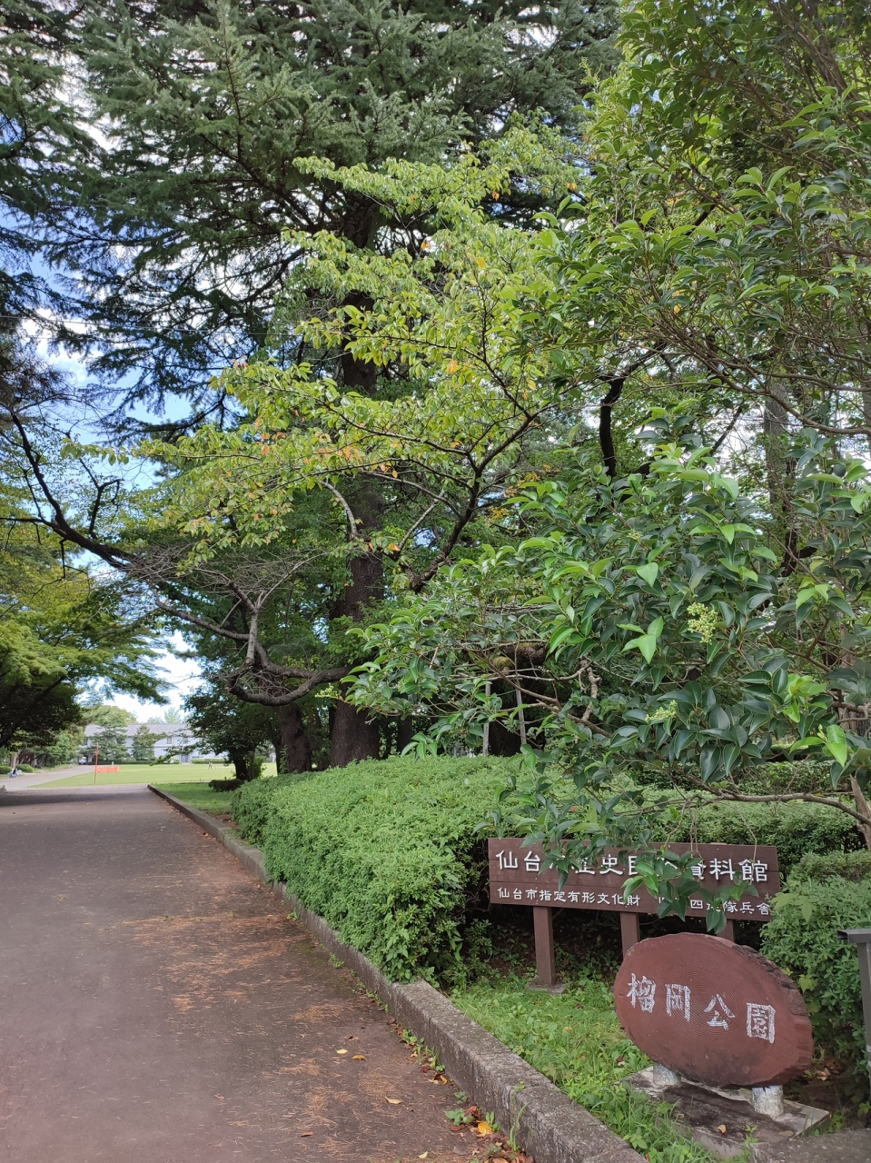仙台駅の東側の方向にあります。すぐ近くというほどではありませんが、徒歩で行ける範囲内です。桜の名所として知られる場所のようですが、季節的には時期外れでした。広い芝生スペースなどがあり、地元の方向けの市民公園という印象でした。