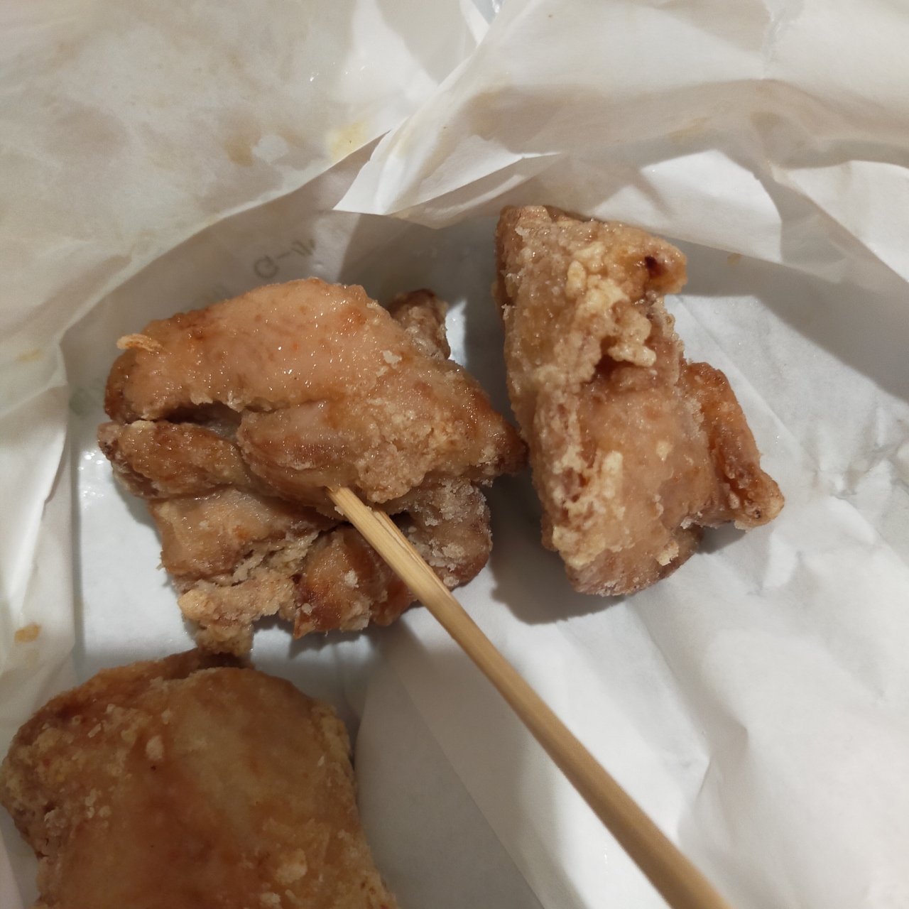 中津名物のからあげを食べてみたいと思って行ってきました。中津城近くのお店です。ミックスからあげ100g 260円を200g購入しました。中くらいの大きさのからあげが6個入っていました。からあげはとにかくジューシー。ジューシーとはこのことか!と思いました。大満足のからあげでした。