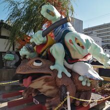 ガマガエルの上に刀をもったカエルが2体…なんともぶっ飛んだシロモノです。てっきり、由緒あるモノだと思いましたが、なんととある美術大学の学園祭に使用したモノだそうです。ナワテ通りはカエルに縁があるのでたまたまこの地に飾られることになったとか。しかも素材は発泡スチロール…。ありがたがって眺めていたのに、事実を知ったら拍子抜けしてしまいました。