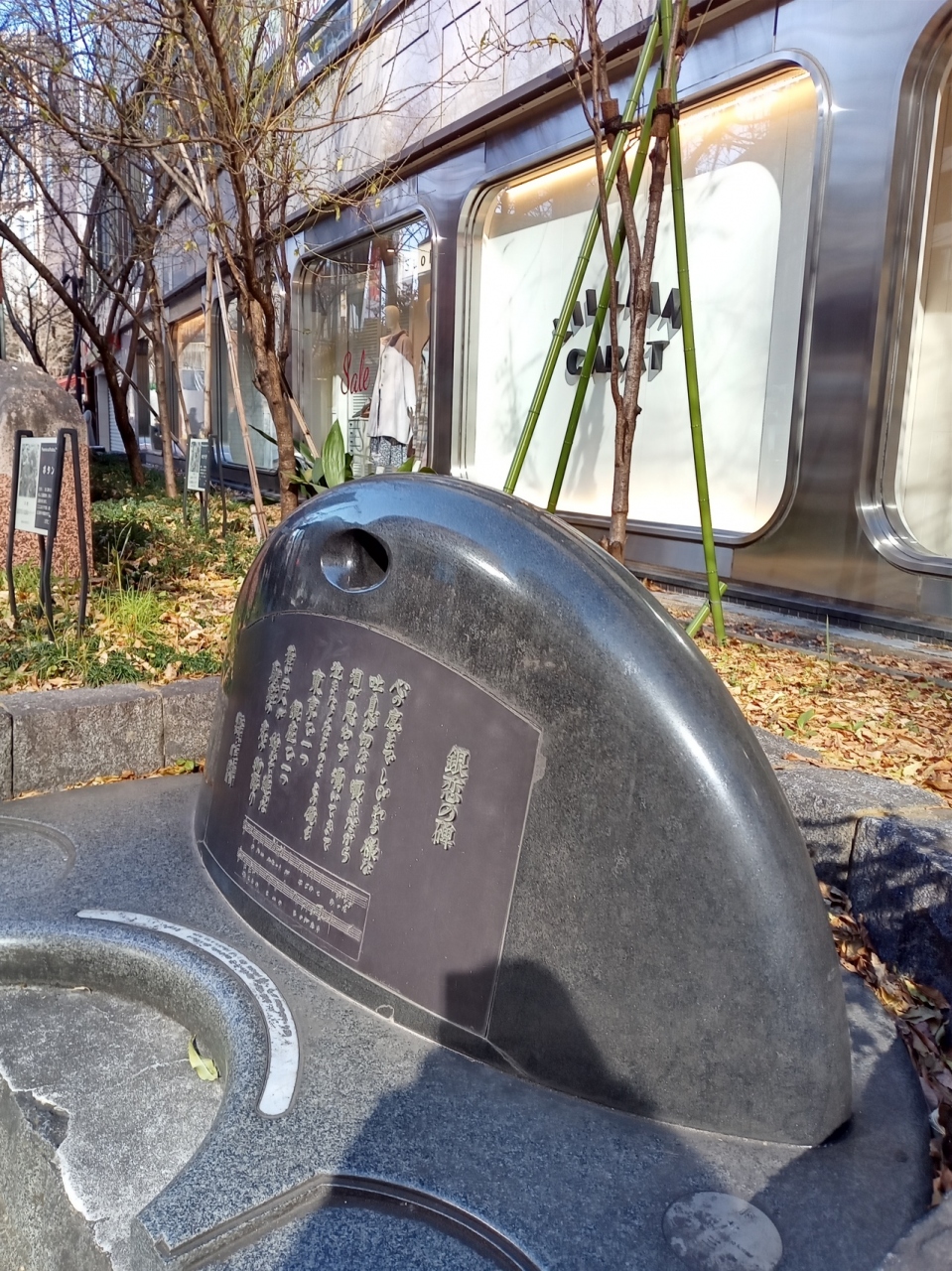 昭和歌謡の大ヒット曲「銀座の恋の物語」の石碑もあります。1961年に発売された石原裕次郎さんと牧村旬子さんのデュエット曲です。